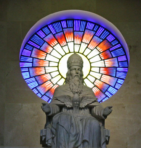 For the Feast of the Most Holy Trinity, I attended the 10:30 am Mass at Holy Trinity in St. Ann. Holy Trinity was formed 8 years ago from the merge of 3-4 parishes and is located at what was once called St. Gregory the Great. The church building was built in 1959 and is in the shape of a Tau (basically a t without the top part.) Although modern, there were many statues and icons.